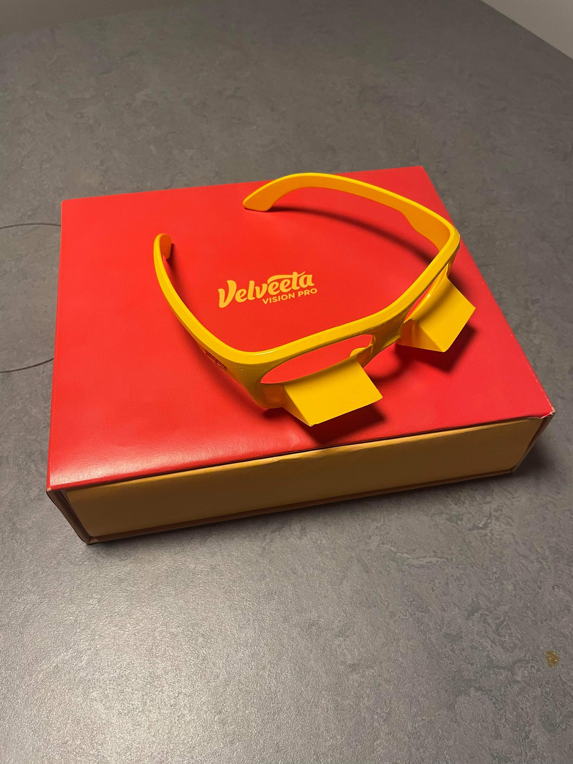 Experience a view that transcends the ordinary. A product with a pleasure purpose, fusing form with function. Allowing you to get caught up in the game while staying present with the drip. It’s years of development, it’s peak split vision tech and American engineering at its best. Its Velveeta Vision Pro.